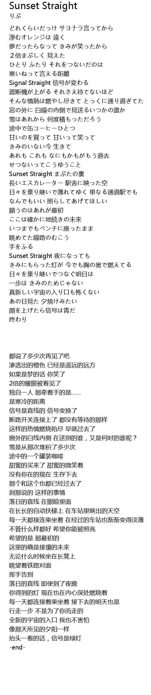 | [01:53.34] | Sunset Straight まぶたの裏 |