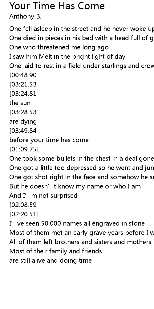 | [03:58.17][02:08.59] | your time has come |
