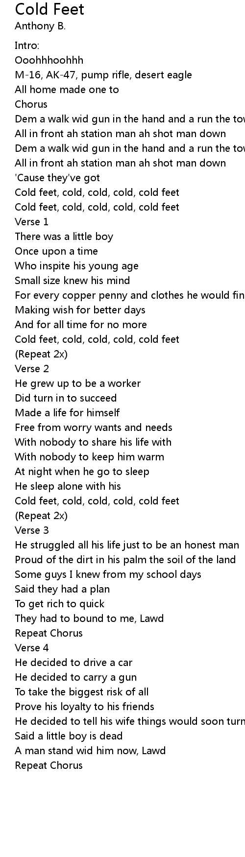 Cold feet, cold, cold, cold, cold feet |