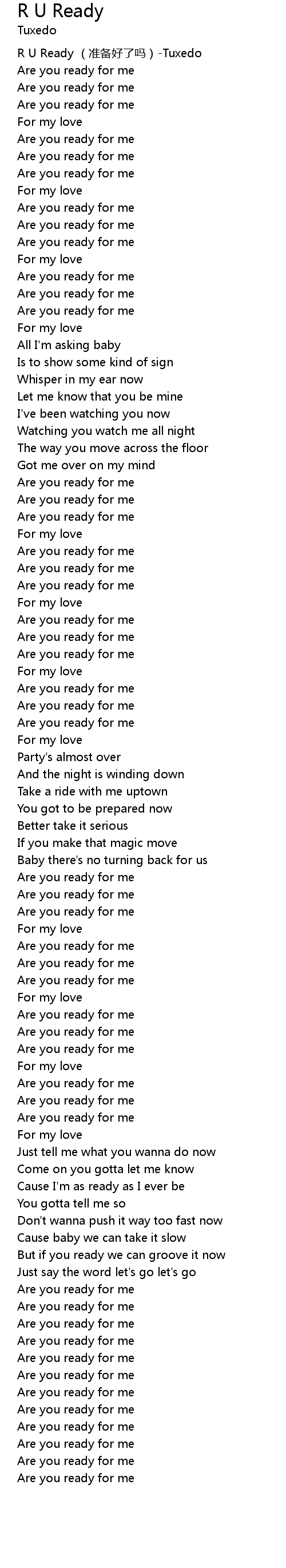 | [00:00.00] | R U Ready (准备好了吗)-Tuxedo |