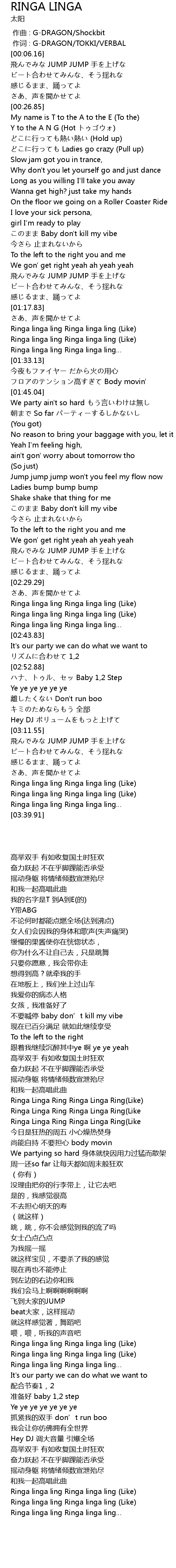 | [01:25.53] | Ringa Linga Ring Ringa Linga Ring(Like |