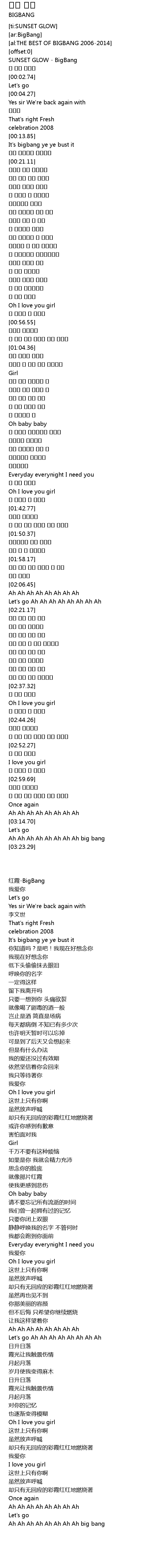 | [00:00.43] | SUNSET GLOW - BigBang |