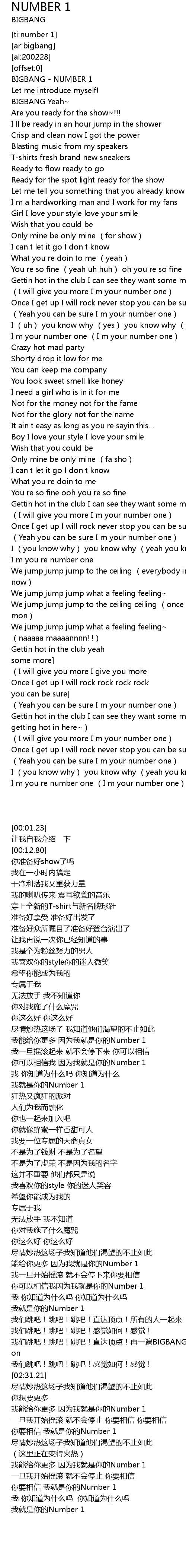 | [00:01.23] | BIGBANG NUMBER 1 |