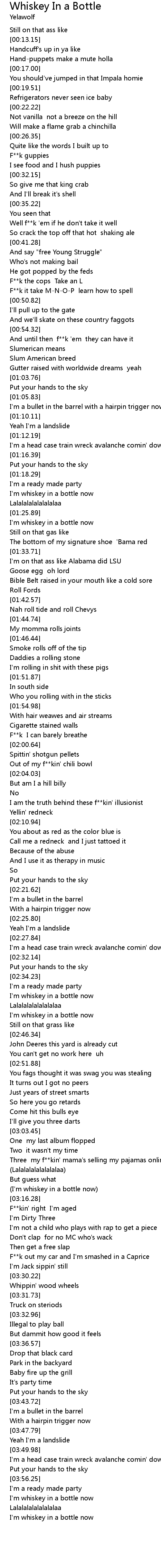 [03:26.34] F**k out my car and I'm smashed in a Caprice