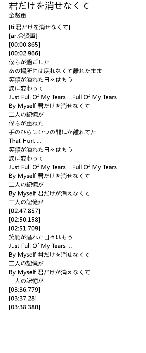 | [02:58.664] | By Myself 君だけを消せなくて |