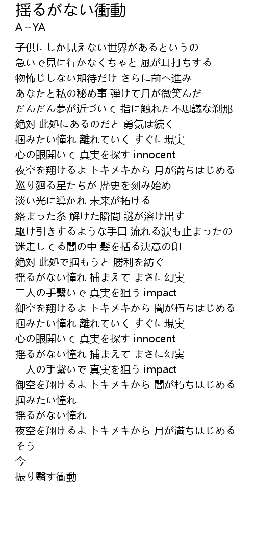 | [02:38.16] | 二人の手繋いで 真実を狙う impact |