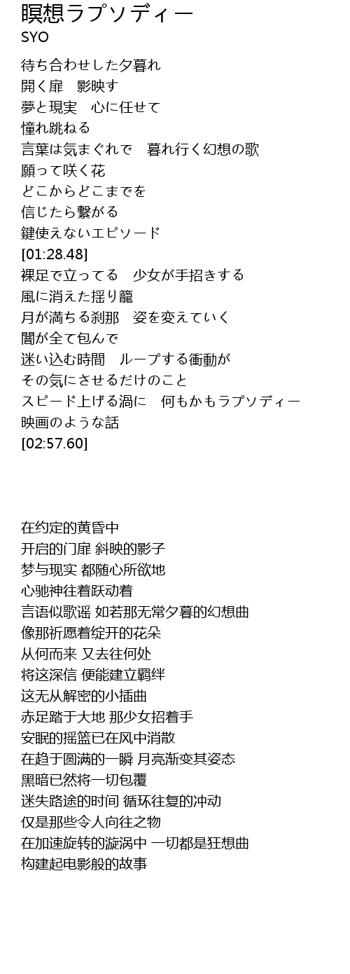 | [00:58.75] | 言语似歌谣 如若那无常夕暮的幻想曲 |