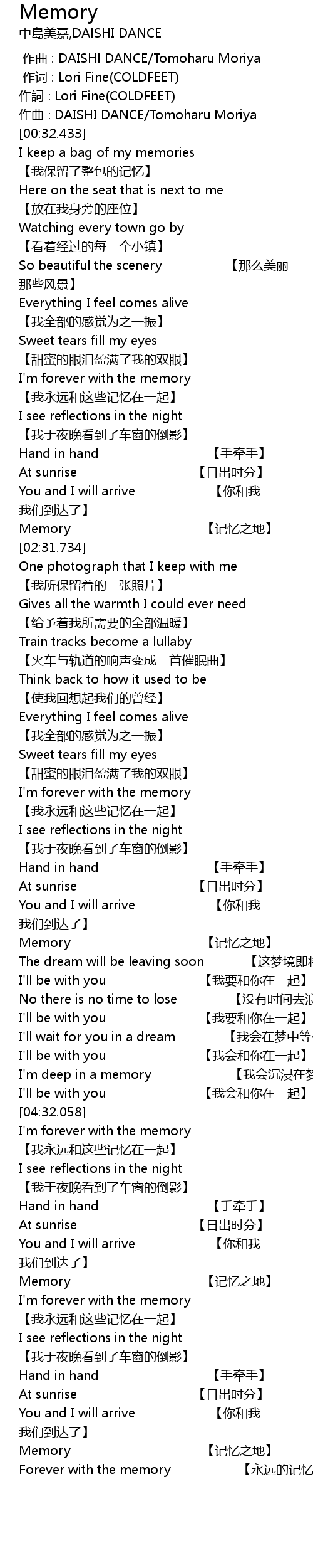 | [02:27.975] | Memory 【记忆之地】 |