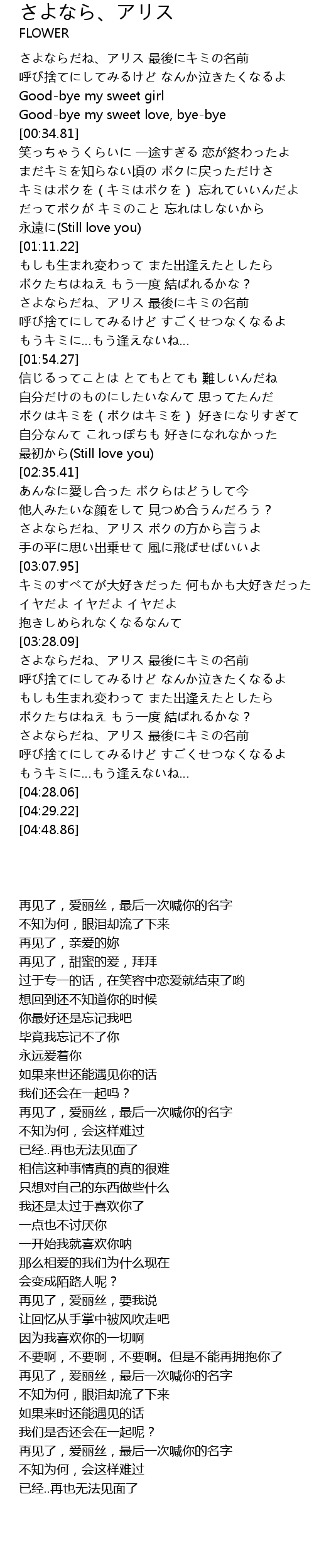| [04:01.54] | 再见了,爱丽丝,最后一次喊你的名字 |
