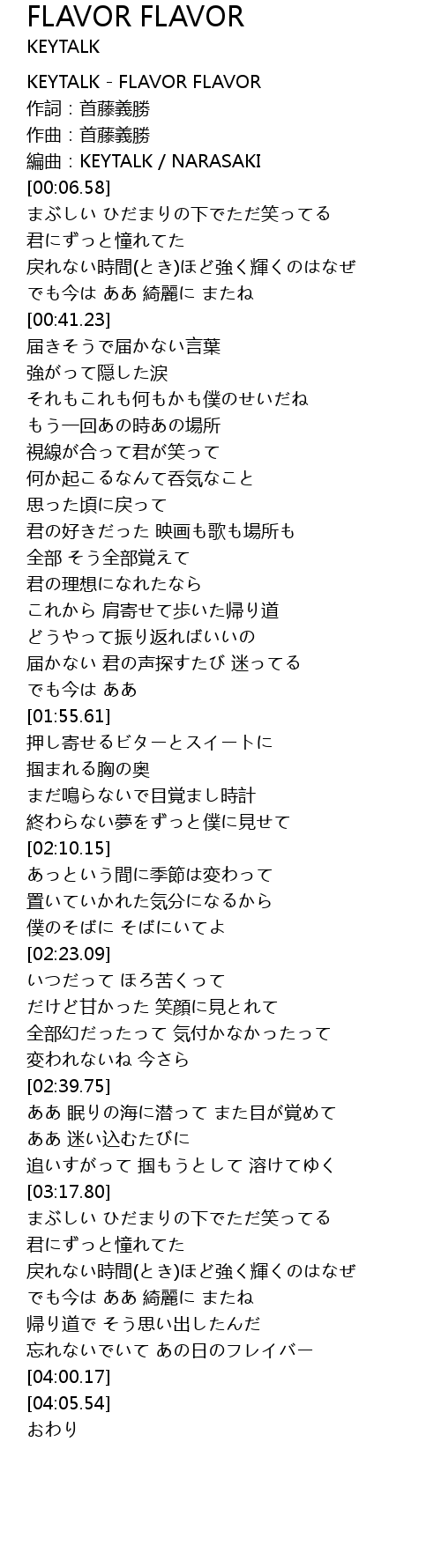 | [00:00.18] | KEYTALK FLAVOR FLAVOR |