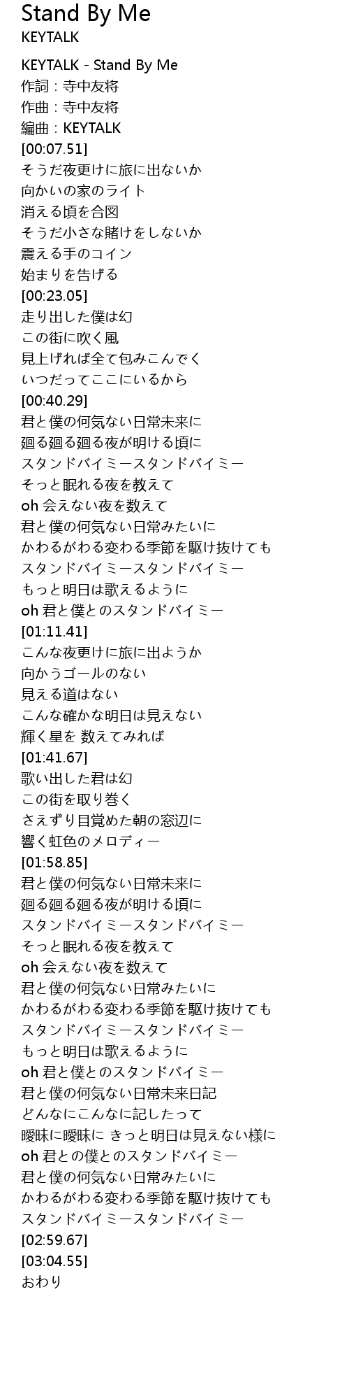 | [00:00.14] | KEYTALK - Stand By Me |