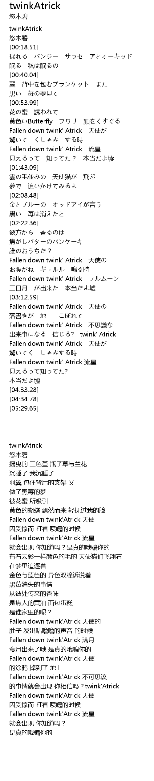 | [04:02.56] | Fallen down twink' Atrick 天使が |