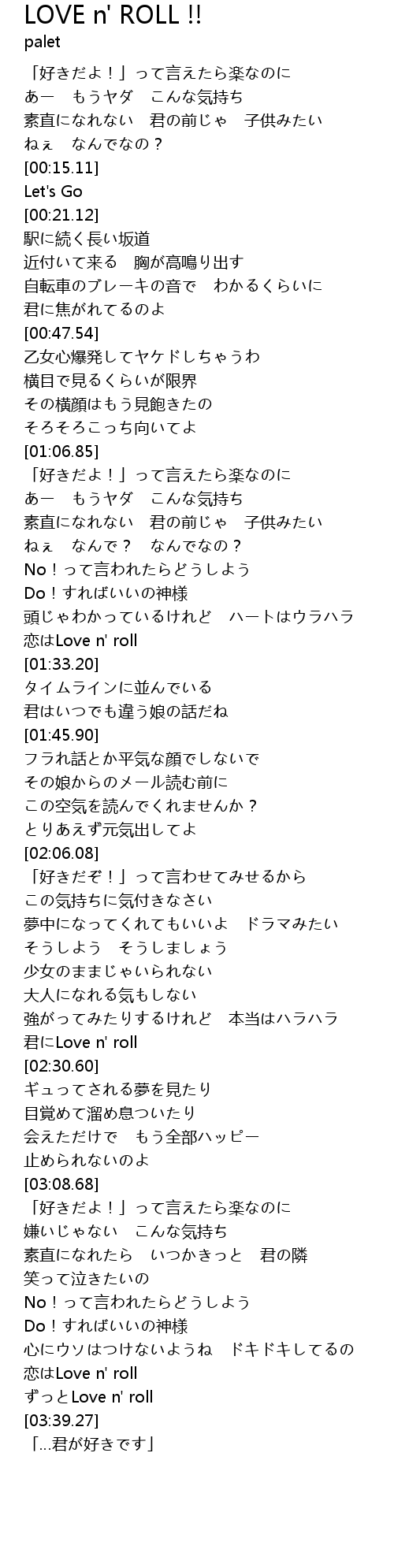 | [03:34.50] | ずっとLove n' roll |