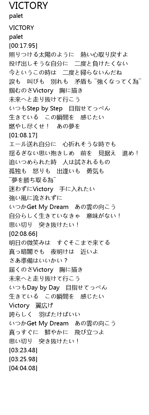 | [01:48.20] | 迷わずにVictory 手に入れたい |