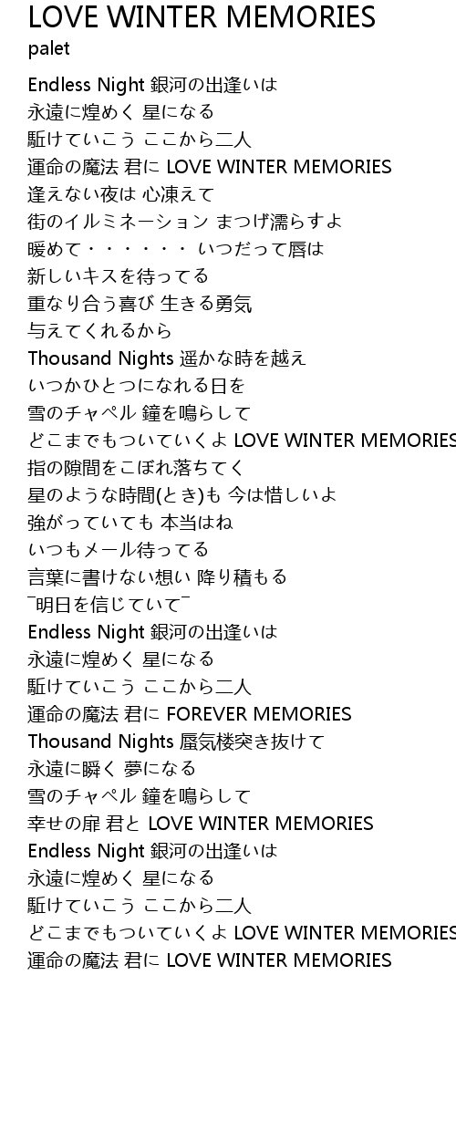 | 歌曲 | LOVE WINTER MEMORIES |