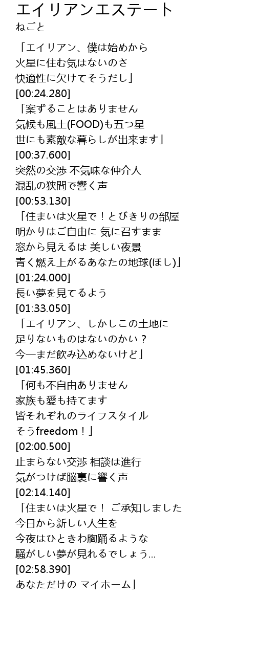 | [01:34.610] | 「エイリアン、しかしこの土地に |