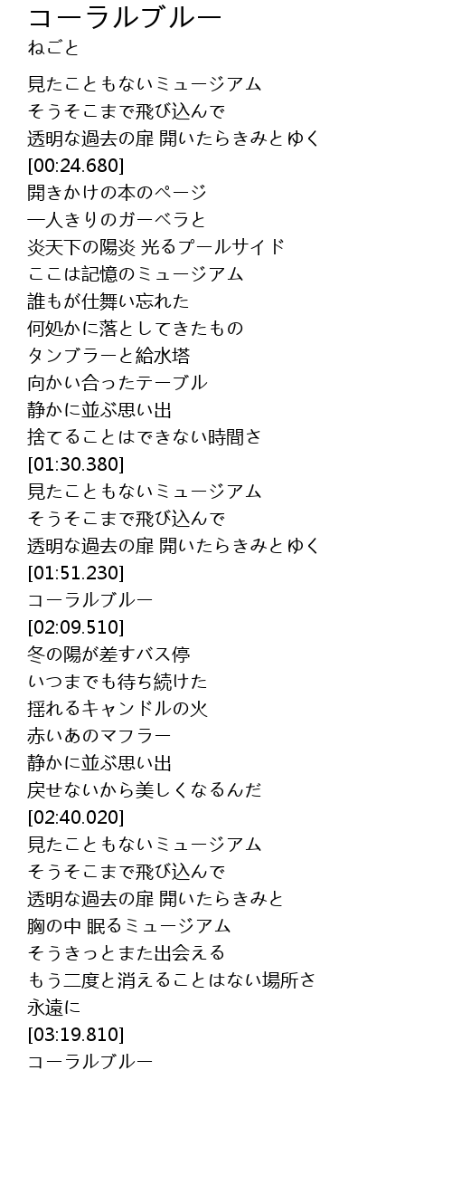 | [02:59.260] | 胸の中 眠るミュージアム |