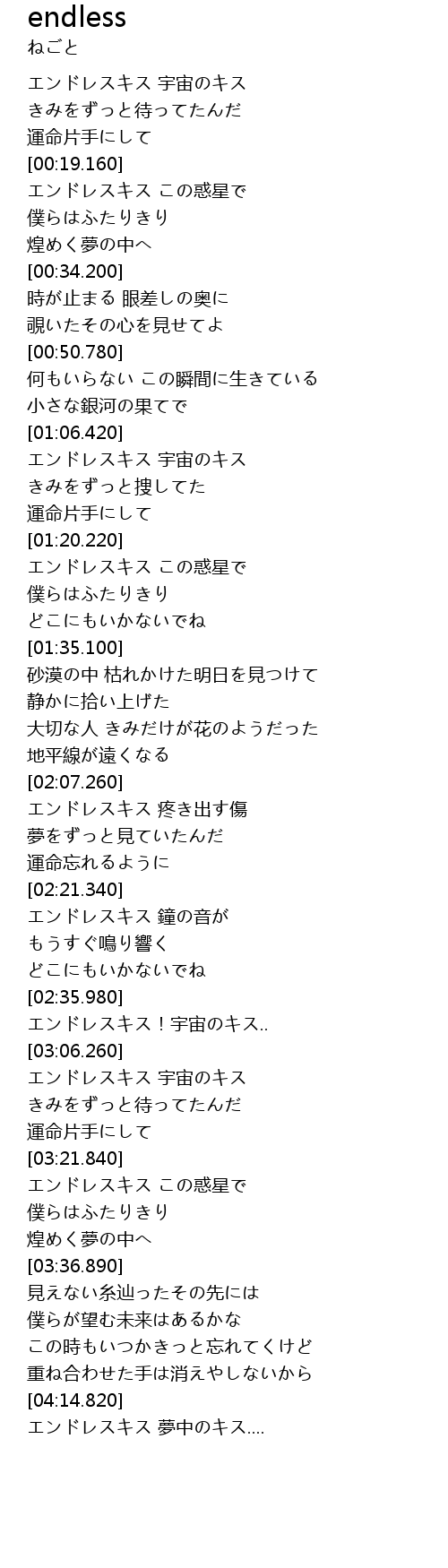 | [03:10.040] | エンドレスキス 宇宙のキス |
