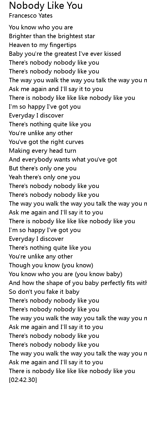 There is nobody like like like nobody like you |
