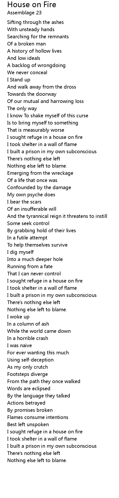 I sought refuge in a house on fire |