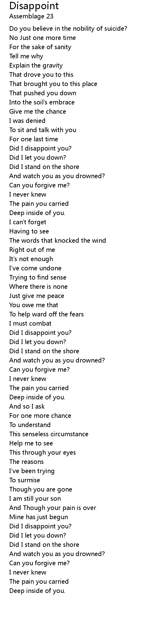 Did I disappoint you? |