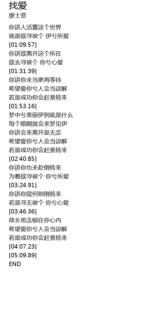 | [03:15.86] | 为着欲寻彼个 你兮所爱 |