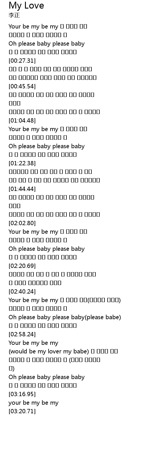| [02:40.69] | Your be my be my 내 사랑이 되줘(내사랑이 되어줘) |