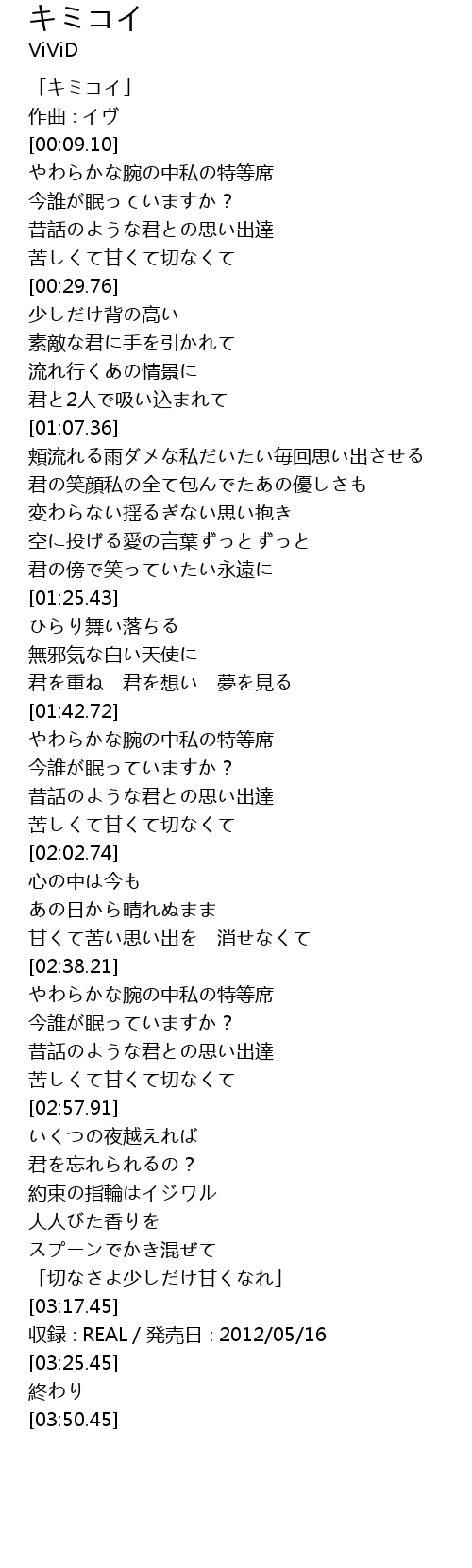 | [03:20.45] | 収録∶REAL/発売日∶2012/05/16 |