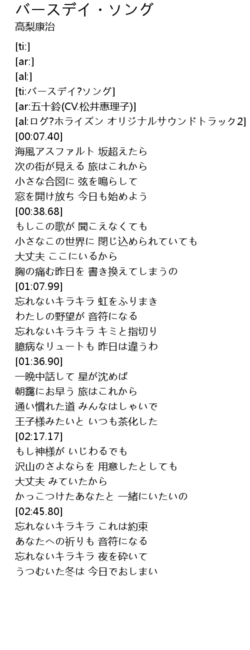 | [ti:バースデイ?ソング] | |