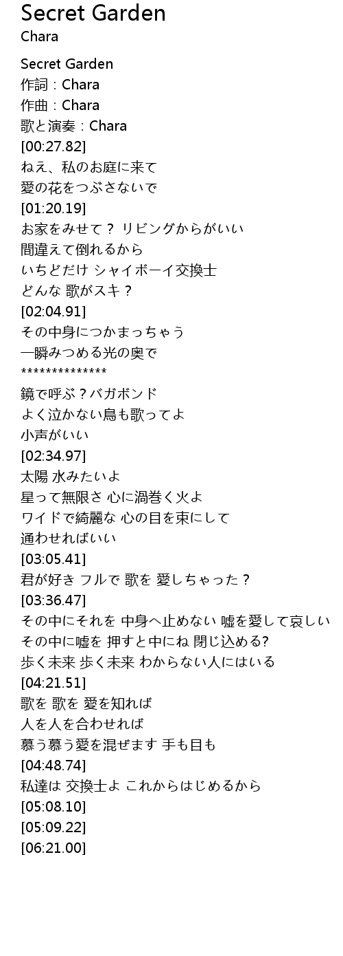 | [00:06.60] | 作詞:Chara |