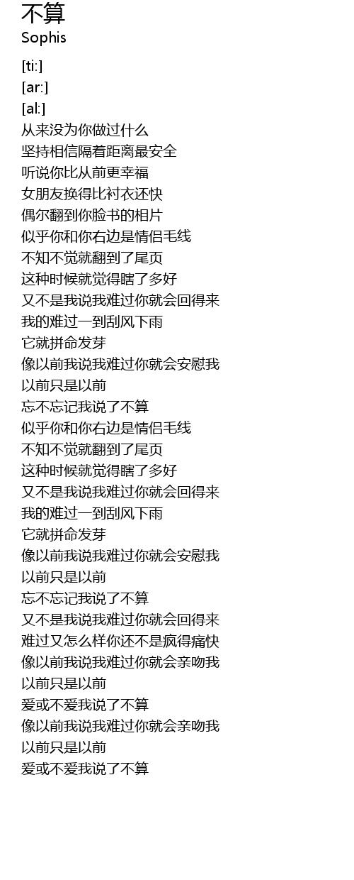 | [01:46.28] | wàng bù wàng jì wǒ shuō liǎo bù suàn |
