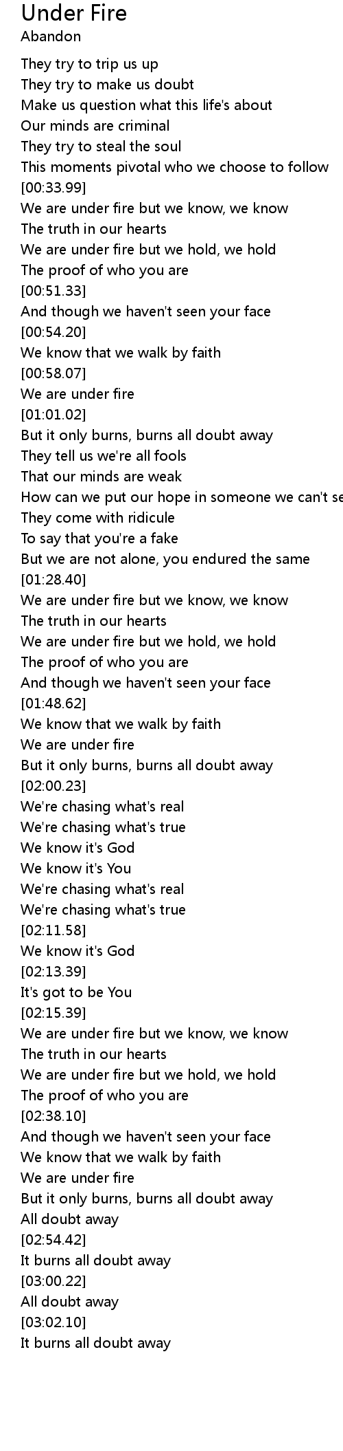 | [02:22.94] | We are under fire but we know, we know |