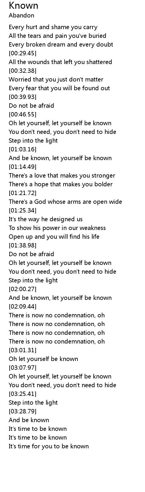 | [00:47.29] | Oh let yourself, let yourself be known |