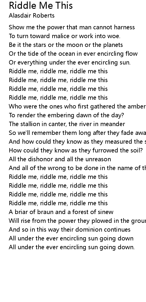 Riddle me, riddle me, riddle me this |