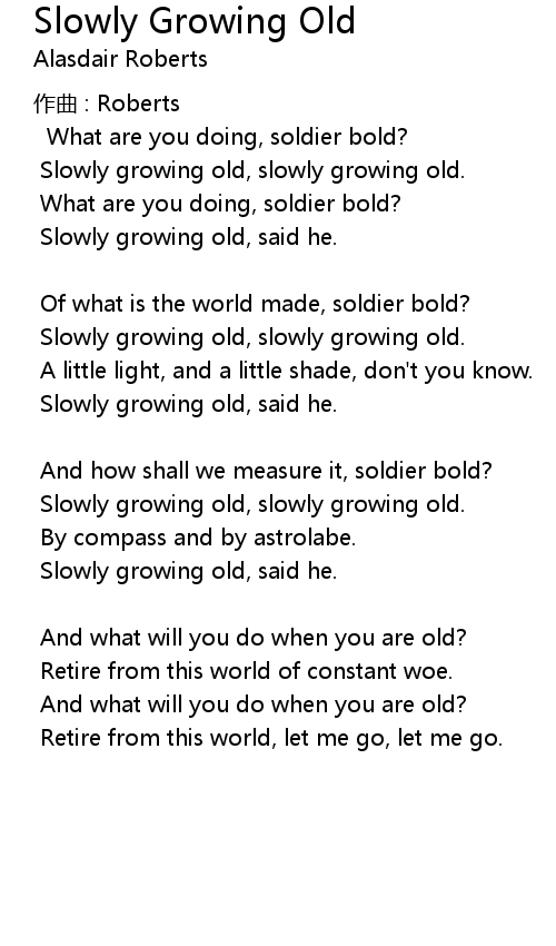 | 歌曲 | Slowly Growing Old |