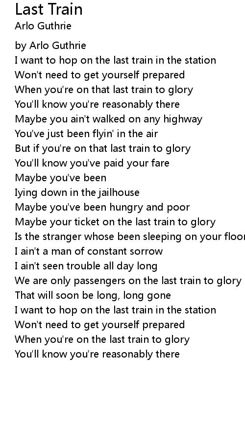 When you're on that last train to glory |
