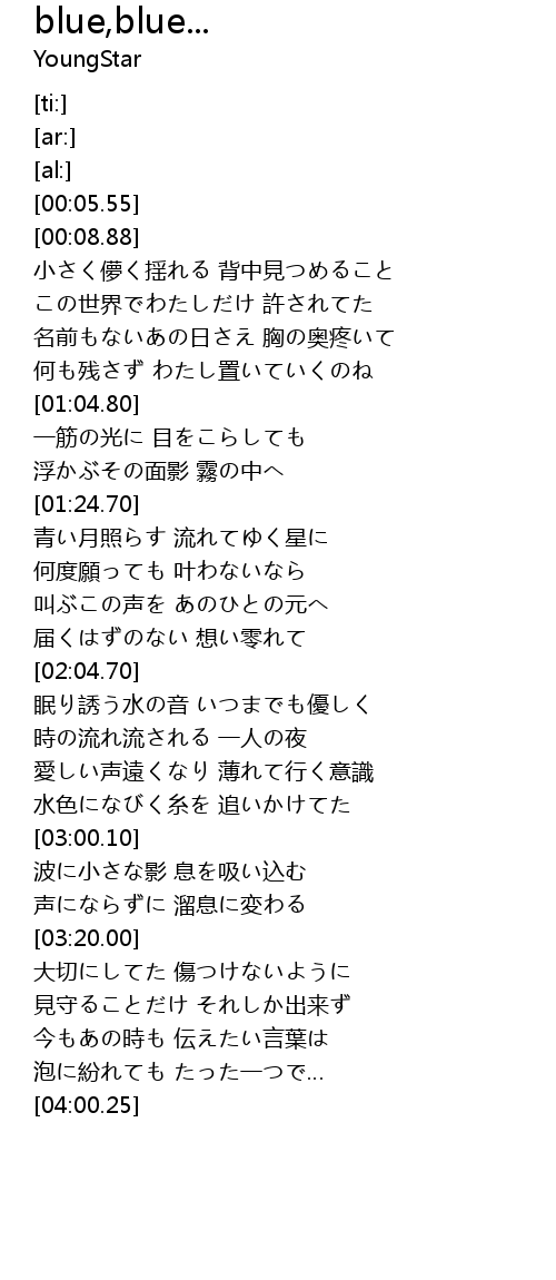 | [01:26.85] | 青い月照らす 流れてゆく星に |