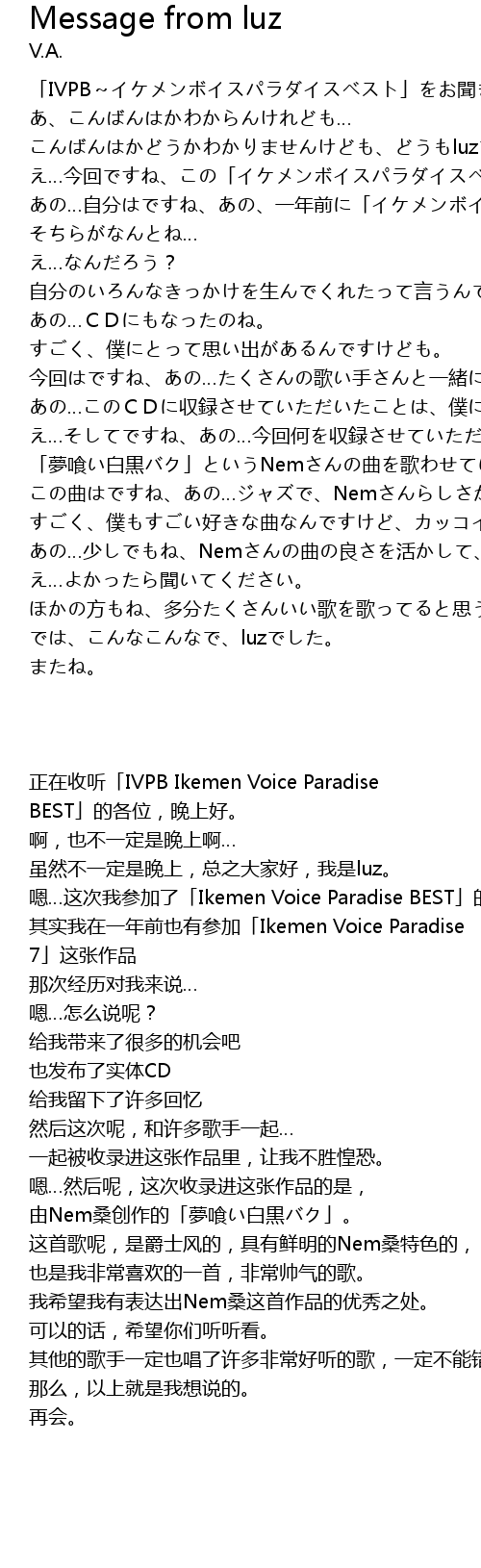 | 歌曲 | Message from luz |