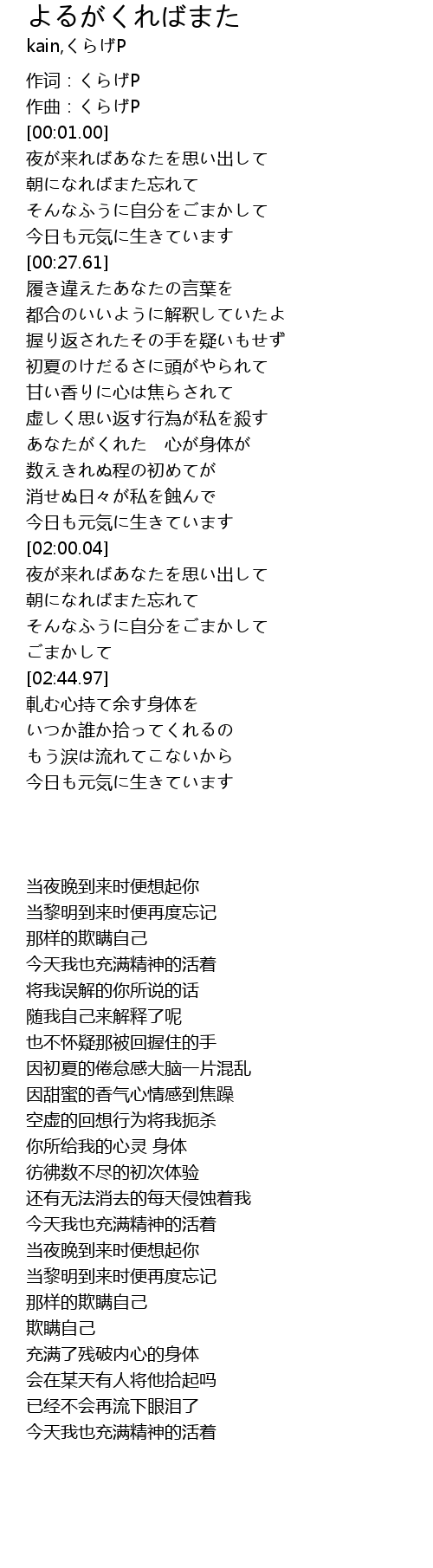 | [01:46.47] | 消せぬ日々が私を蝕んで |