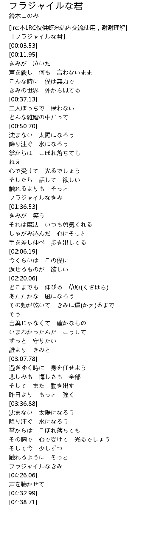 | [01:54.68] | しゃがみ込んだ 心にそっと |