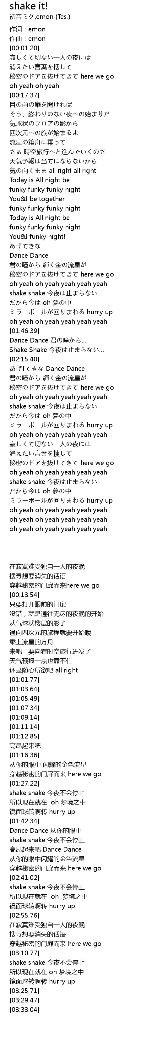 | [03:14.71] | shake shake 今夜不会停止 |