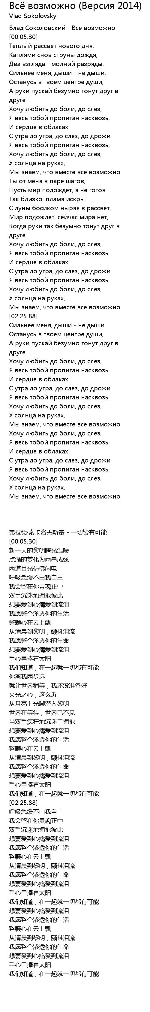 | [00:00.80] | Влад Соколовский - Все возможно |