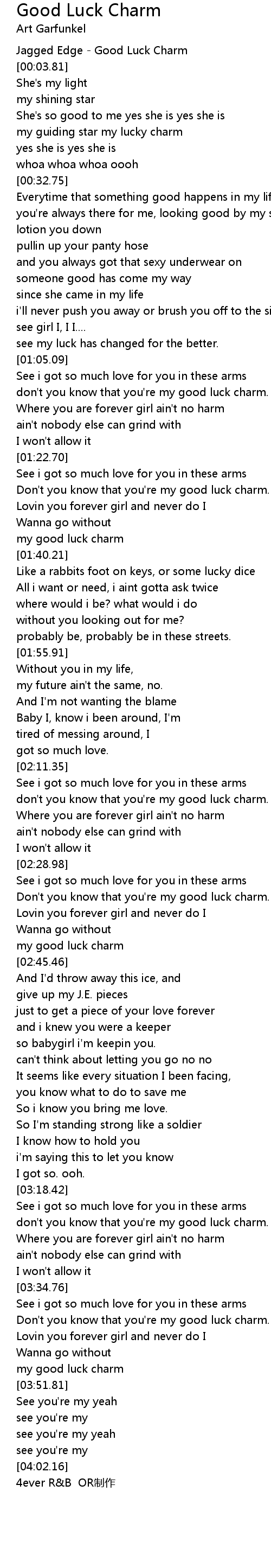 | [00:00.79] | Jagged Edge - Good Luck Charm |
