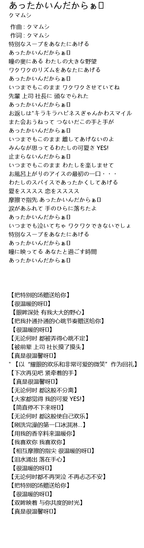 | [02:32.64] | わたしのスパイスであったかくしてあげる |