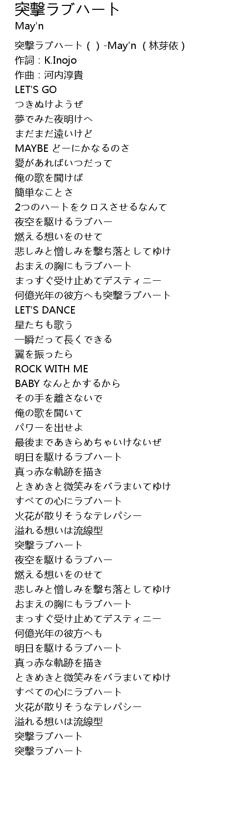 | [00:00.00] | 突撃ラブハート()-May'n (林芽依) |