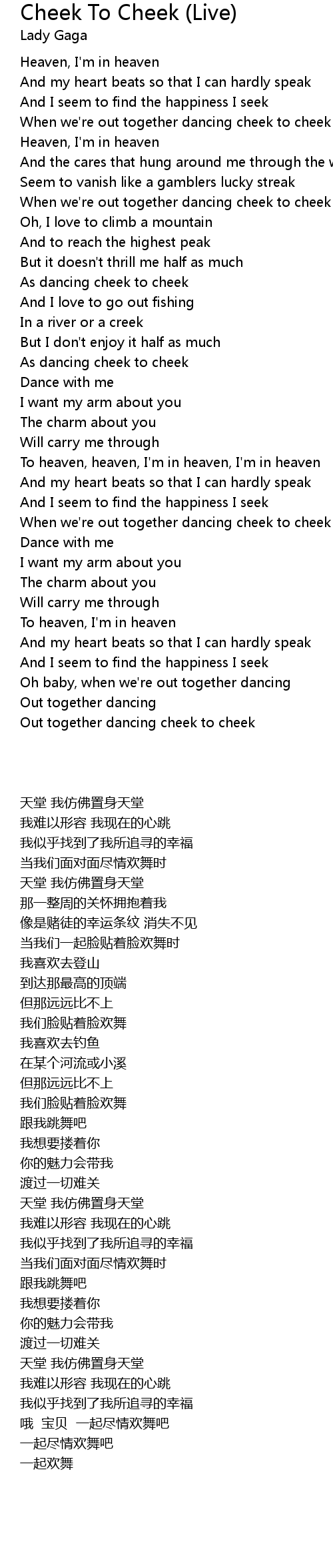 When we're out together dancing cheek to cheek |