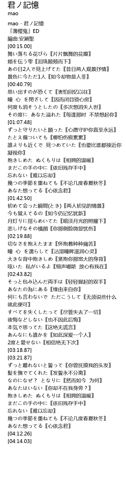 | [00:00.00] | mao - 君ノ記憶 |