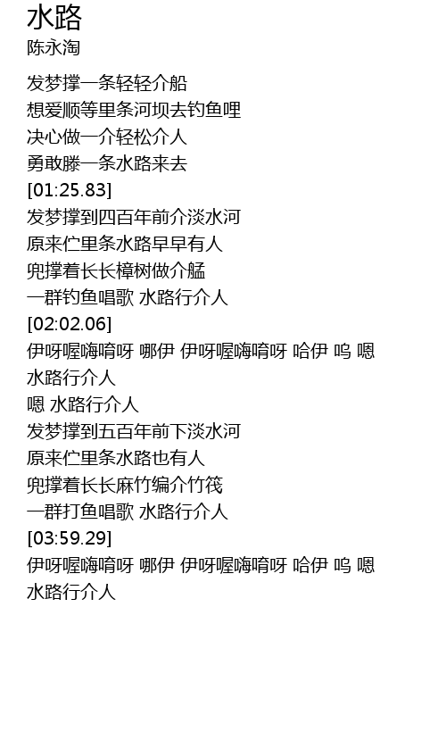 | [03:46.80] | 一群打鱼唱歌 水路行介人 |