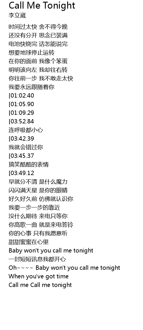 | [03:23.30] | Oh~~~~ Baby won't you call me tonight |