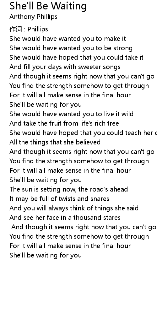 | She' ll be waiting for you | |
